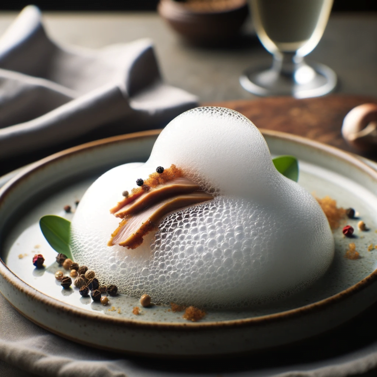 Balinese Duck Foam’ which reimagines the rich flavors of traditional Bebek Betutu into a light and airy foam, capturing the dish’s essence in a visually subtle form.