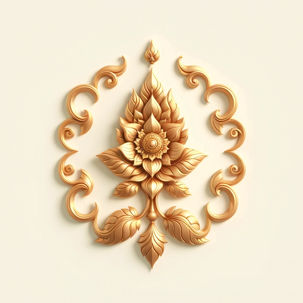 These designs reflect a deep appreciation for nature, with the floral elements symbolizing growth, prosperity, and the natural beauty of the Thai landscape. The use of gold not only adds a touch of opulence but also carries cultural significance, as gold is often associated with the divine and the sublime in Thai culture. The meticulously detailed work in these pieces speaks to a time-honored tradition of artisanship, where each curve and contour is imbued with meaning and intention.