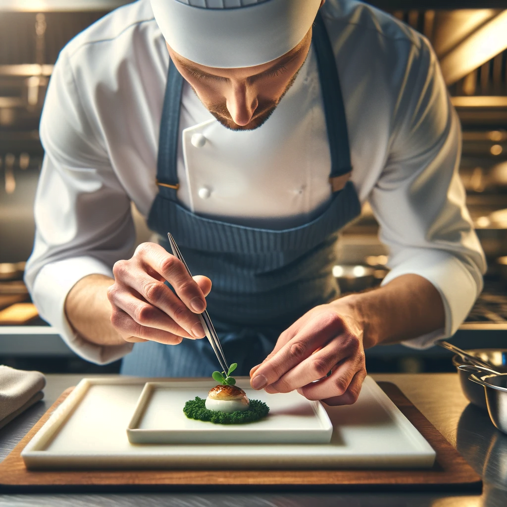 I’ve harnessed the power of AI to create an image that captures the essence of culinary artistry. In this composition, a chef is the epitome of focus and precision, placing the final garnish on a meticulously crafted dish. The attention to detail is palpable, with each element on the plate serving a purpose, much like the individual brush strokes in a painting. This visual showcases the chef’s dedication to their craft, where the act of plating is as much a performance as it is a preparation, inviting onlookers to appreciate the beauty in the creation of a dish before indulging in its flavors. It’s a celebration of the culinary arts through the lens of technology, blending tradition with innovation. SCORE: 19/25