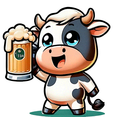 Technique: The illustration is clean, with smooth lines and solid color fills. The shading and highlights on the cow character give it a three-dimensional feel. The text is legible and integrates well with the overall design. Rating: 3/5